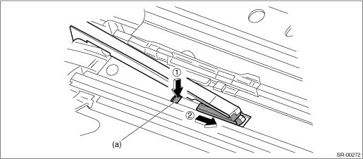 (2) While pressing down the hook (a) of rail assembly - sunroof, slide it to the rail rear direction to remove.