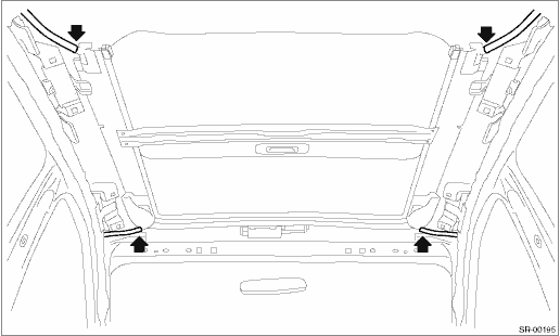 3. Remove the trim panel - roof assembly. Roof Trim > REMOVAL 4. Disconnect the connector of the motor assembly - sunroof. 5. Remove the rail assembly - sunroof. NOTE: When removing the drain tube - sunroof completely, perform the step 7) or 8).