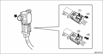 (2) Remove the bolt, and then detach the front sub sensor. (3) Disconnect the connector of front sub sensor. Airbag Connector > PROCEDURE