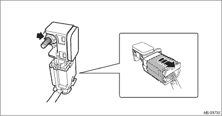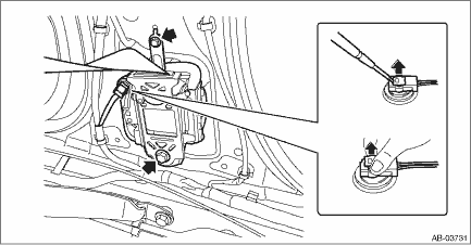 1. Move the seat all the way forward, from which the side airbag sensor is to be removed. NOTE: This is to remove the seat belt retractor assembly. 2. Turn the ignition switch to OFF. 3. Disconnect the ground terminal from the battery sensor, and wait for at least 60 seconds before starting work. NOTE NOTE: For model with the power seat, move the seat to the front-most position before removing the battery ground terminal. 4. Remove the rear seat cushion assembly. Rear Seat > REMOVAL 5. Remove the cover side sill - front, cover side sill - rear, and the trim panel - center pillar LWR. (On the side where the side airbag sensor is removed) Lower Inner Trim > REMOVAL 6. Remove the seat belt retractor. (On the side where the side airbag sensor is removed) (1) Disconnect connector of the pretensioner. Airbag Connector > PROCEDURE (2) Remove the bolt to remove the seat belt retractor.