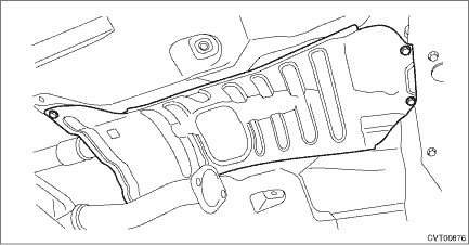 CAUTION: Immediately after the vehicle has been running or after idling for a long time, the CVTF will be hot. Be careful not to burn yourself. 1. Lift up the vehicle. 2. Remove the center exhaust pipe. Center Exhaust Pipe > REMOVAL 3. Remove the center exhaust cover.