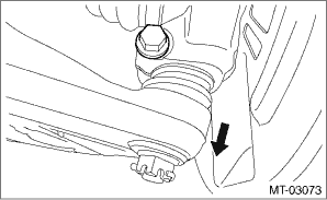 14. Insert the front arm ball joint and tighten the mounting bolt. Tightening torque: 50 N·m (5.1 kgf-m, 36.9 ft-lb)