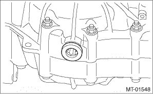 5. Lower the vehicle. 6. Fill with transmission gear oil through the oil level gauge hole. CAUTION: If an alternative gear oil is used, you may not have expected functionality and performance. Recommended gear oil: SUBARU GEAR OIL EXTRA MT Alternative: GL-5 (75W-90) Gear oil capacity: 3.3 L (3.5 US qt, 2.9 Imp qt) 7. Check the transmission gear oil amount, and confirm that it is within the specification. |