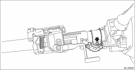 CAUTION: • Before handling the airbag system components, refer to “CAUTION” of “General Description” in “AIRBAG SYSTEM”. General Description > CAUTION • Do not allow harness and connectors to interfere or get tangled up with other parts. • If the steering wheel and steering angle sensor (steering roll connector) are removed, perform “VSC(VDC) Centering Mode” of the VDC. VDC Control Module and Hydraulic Control Unit (VDCCM&H/U) > ADJUSTMENT 1. Disconnect the ground terminal from the battery sensor, and wait for at least 60 seconds before starting work. NOTE 2. Remove the column assembly - steering. Steering Column > REMOVAL 3. Remove the ignition key lock. (1) Secure the column assembly - steering in a vise. (2) Use the reverse tap and drill to remove the set bolt and remove the ignition key lock.