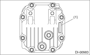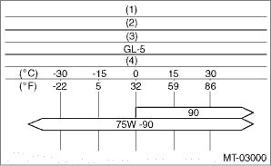 2. IDENTIFICATION Identification positions are shown in the following figures. For details concerning identification, refer to the “ID” section. • T-type • VA1-type • VA2-type 3. REAR DIFFERENTIAL GEAR OIL Recommended gear oil: GL–5 (75W–90) or equivalent CAUTION: Each oil manufacturer has its base oil and additives. Thus, do not mix two or more brands. (1) | Item | (2) | Rear differential gear oil | (3) | API classification | (4) | SAE viscosity No. and applicable temperature |