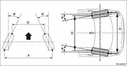 A − B = Positive: Toe-in, Negative: Toe-out α = Individual toe angles | ||||||||||||||||||||||||||||||||