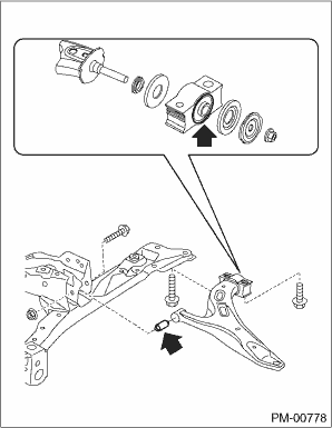 5. If the movement related to the previous two steps is observed, replace the front lateral link. Front Lateral Link 6. Damage of dust boots Visually inspect the ball joint dust boots. Replace if front lateral link is damaged. 7. Check upper arm ball joint in the same manner.