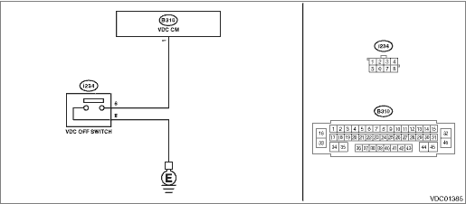 DETECTING CONDITION: • Defective combination meter • Defective CAN communication • VDC OFF switch is shorted. TROUBLE SYMPTOM: When starting the engine, VDC OFF indicator light is kept ON. WIRING DIAGRAM: NOTE: For the coupling connector, refer to “WIRING SYSTEM”. Vehicle dynamics control system Vehicle Dynamics Control System