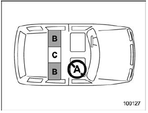 A: Front passenger's seat You should not install a child restraint system (including a booster seat) due to the hazard to children posed by the passenger's airbag. B: Rear seat, window-side seating positions Recommended positions for all types of child restraint systems. In these positions, the following equipment is provided for installing a child restraint system.